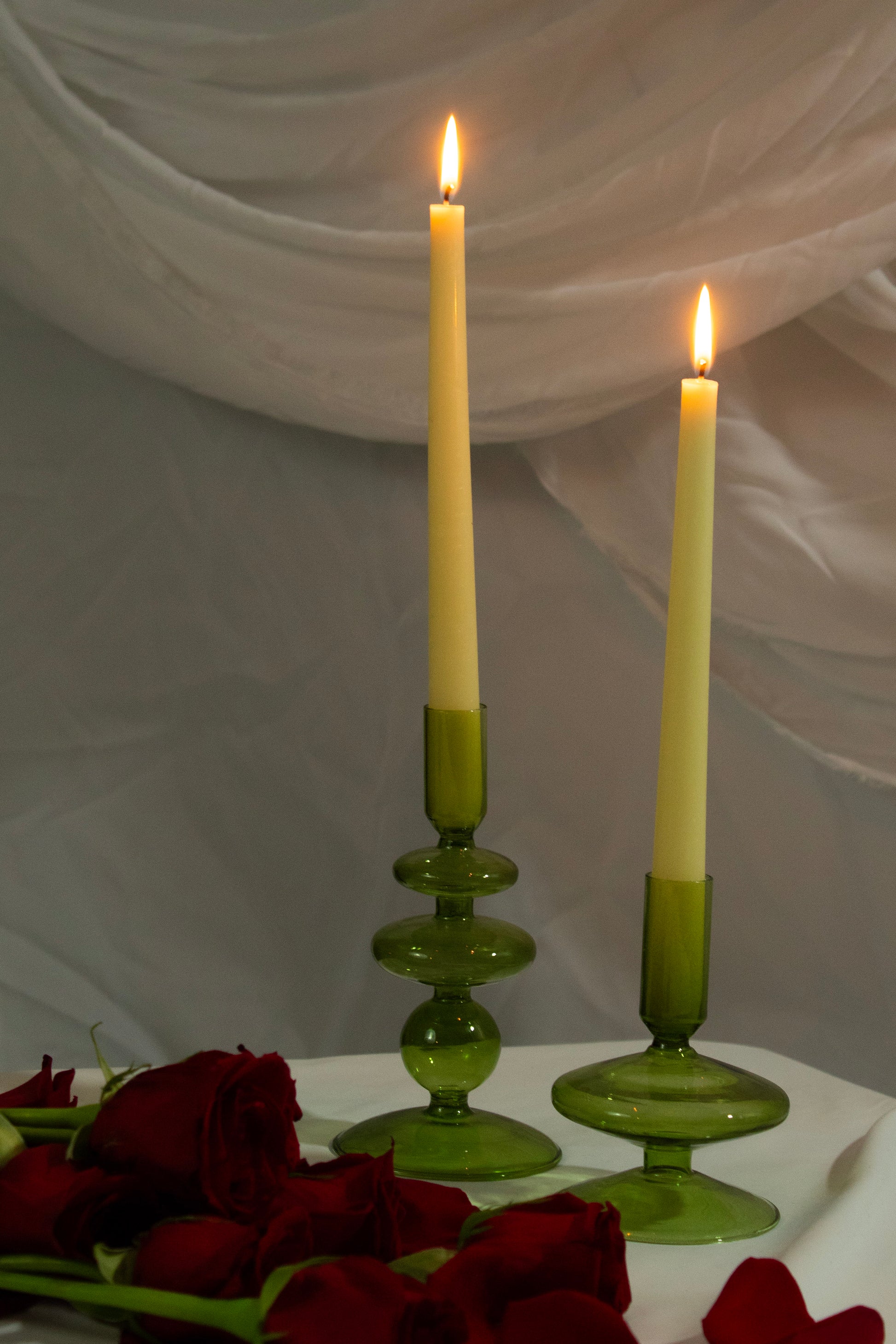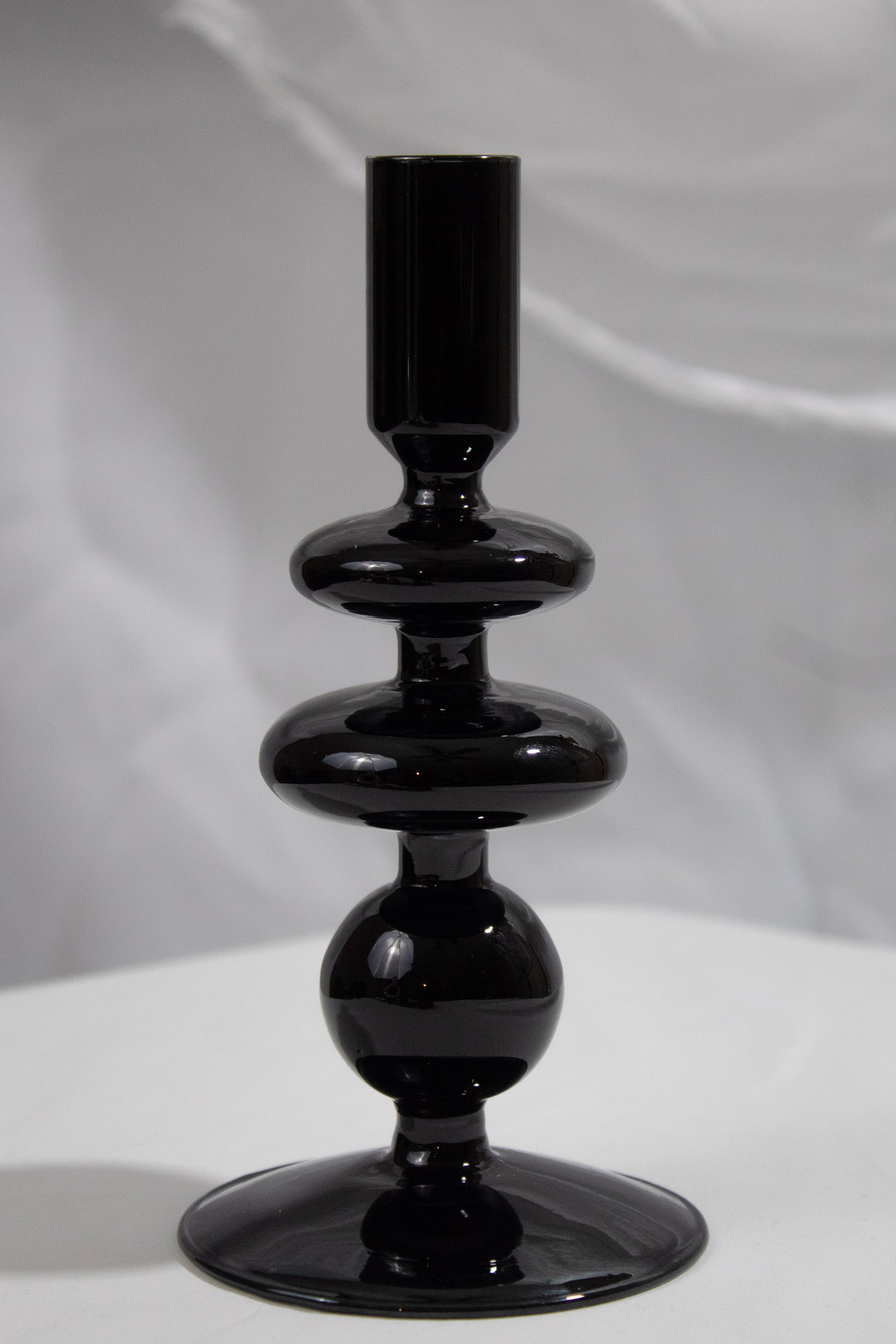 This glossy, sculptural taper holder instantly elevates any surface — from your coffee table to your bedside nook. Its modern rounded design adds soft, feminine texture without cluttering your space. Style it solo for a minimalist moment or pair two together for that curated, editorial vibe.Â