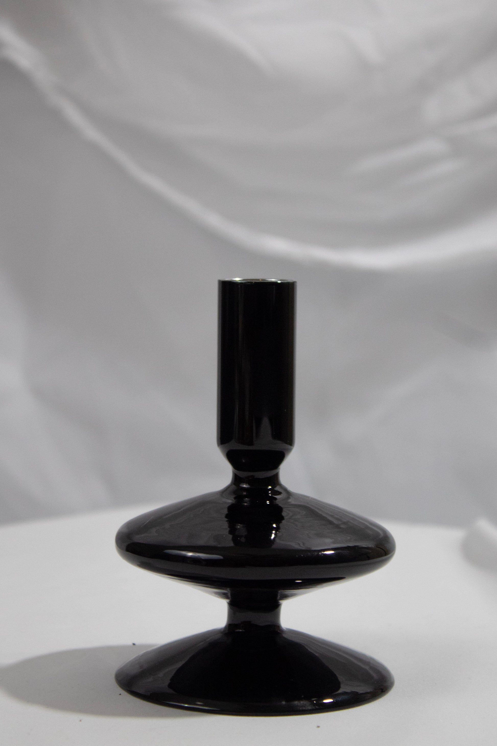 Meet the vintage-inspired glass taper holder that instantly elevates your space. With its sculptural silhouette and rounded, modern shape, it adds the perfect touch of feminine charm to your coffee table, desk, or bedside nook. It brings just the right amount of understated elegance to any surface.